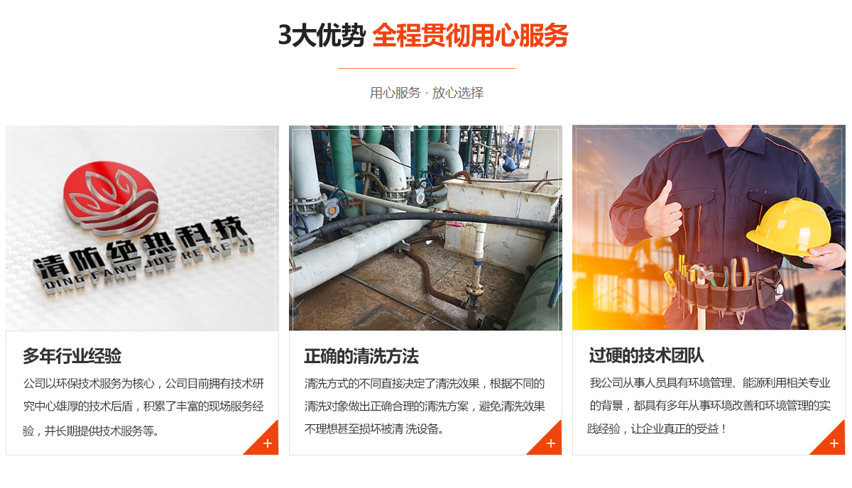 專業(yè)從事化學(xué)清洗、物理清洗各種型號換熱器、鍋爐、管線、維修,污水處理設(shè)施的修復(fù)、管理、經(jīng)營、技術(shù)咨詢及配套服務(wù);環(huán)境技術(shù)開發(fā);防腐、保溫等領(lǐng)域的工程施工、技術(shù)咨詢等;目前主要合作單位以煤化工、發(fā)電廠、治煉廠為主;公司目前擁有技術(shù)研究中心雄厚的技術(shù)后盾,積累了豐富的現(xiàn)場服務(wù)經(jīng)驗(yàn),并長期提供技術(shù)服務(wù)等。